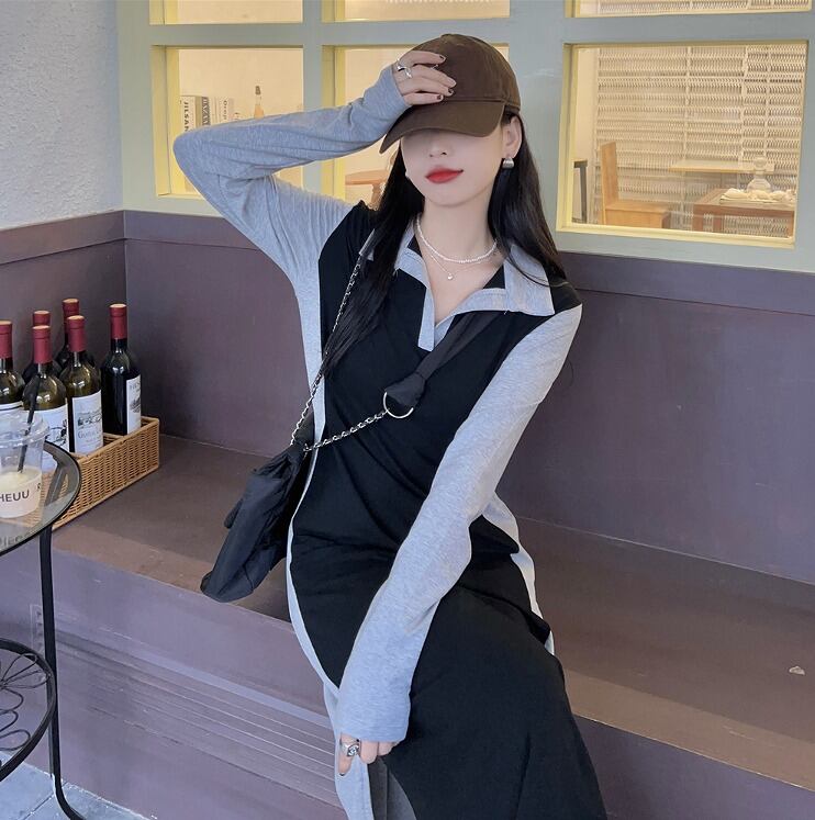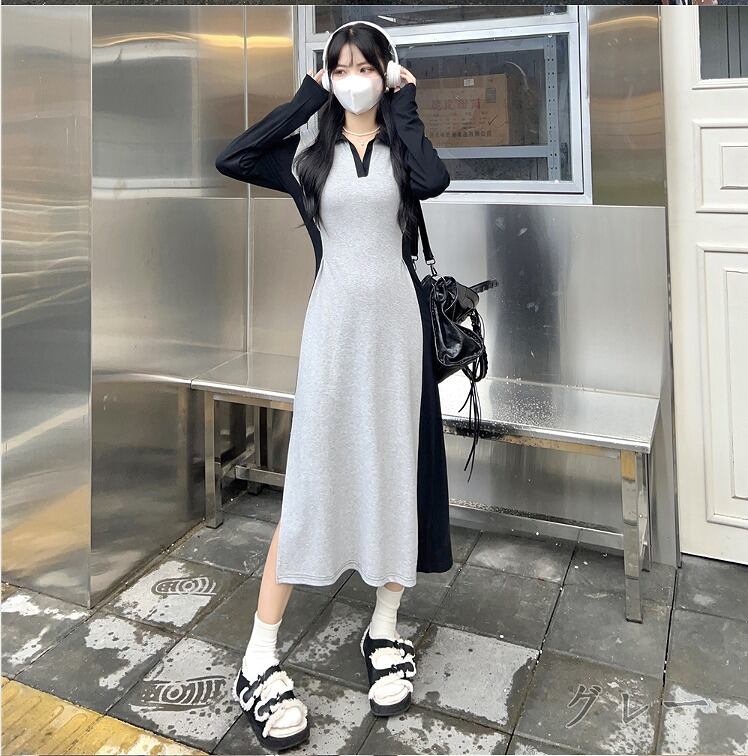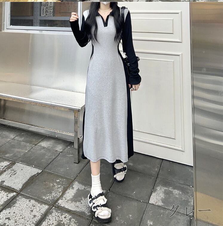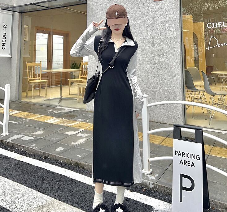 【大きいサイズL-4XL】【秋冬新作】ファッションワンピース♪ブラック/グレー2色展開◆#sctots-270667