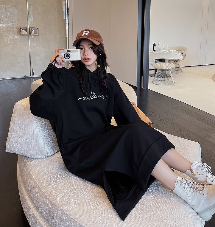 【大きいサイズXL-4XL】裏起毛ファッションワンピース♪アンズ/ブラック2色展開◆#sbiot-2320057