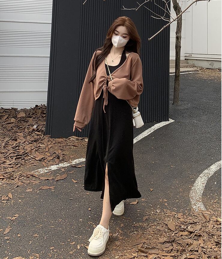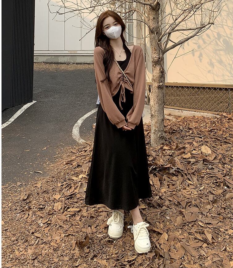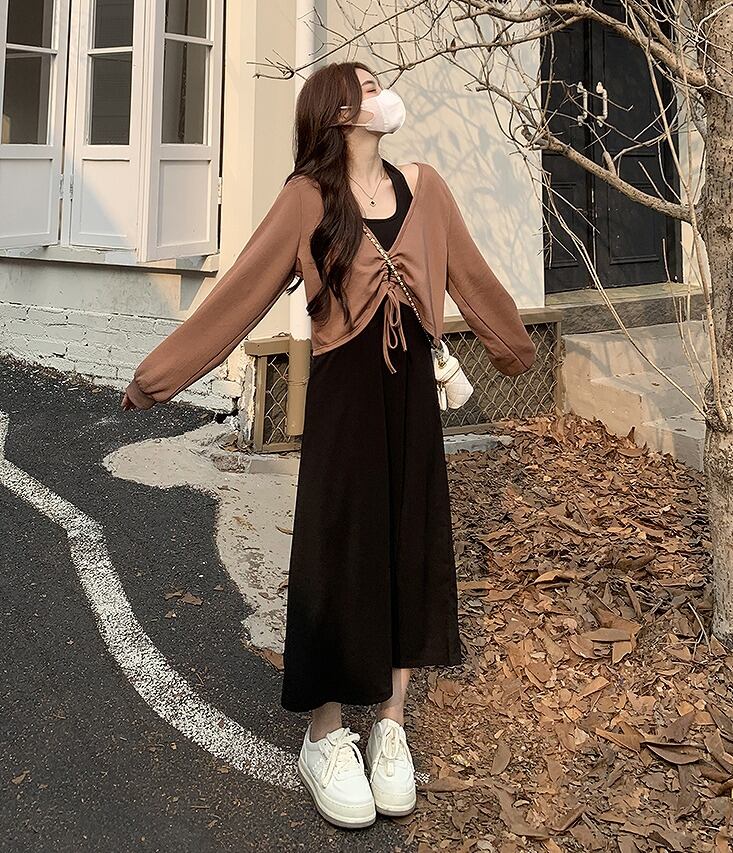 【大きいサイズL-4XL】【秋冬新作】ファッション/2枚セットワンピース