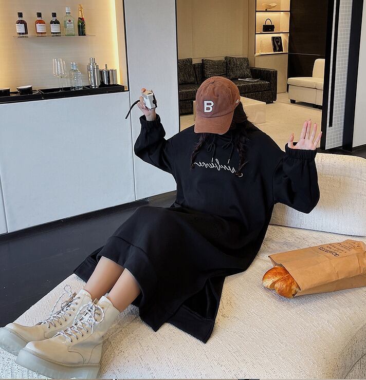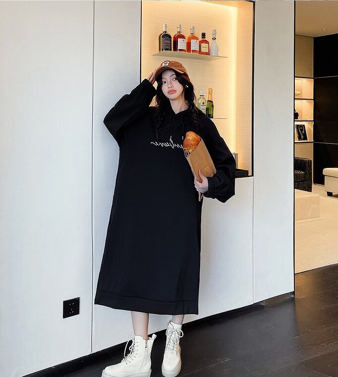 【大きいサイズXL-4XL】裏起毛ファッションワンピース♪アンズ/ブラック2色展開◆#sbiot-2320057