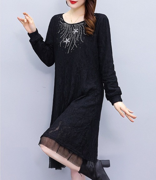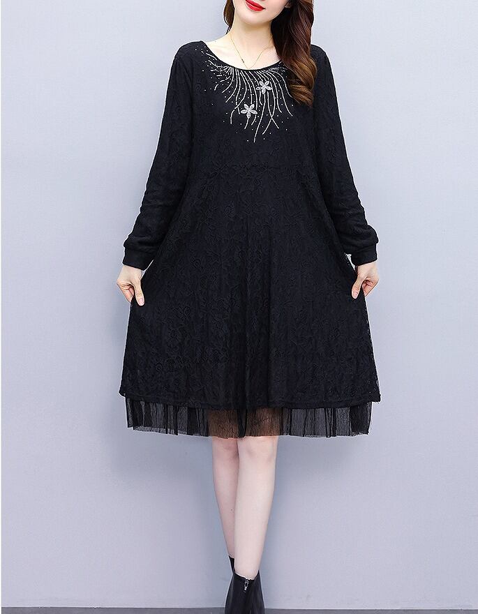 【大きいサイズXL-5XL】【秋冬新作】裏起毛ファッションワンピース