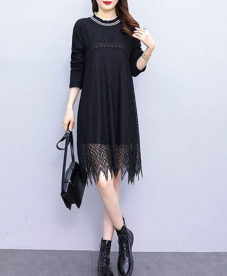 【大きいサイズXL-5XL】【秋冬新作】裏起毛ファッションワンピース