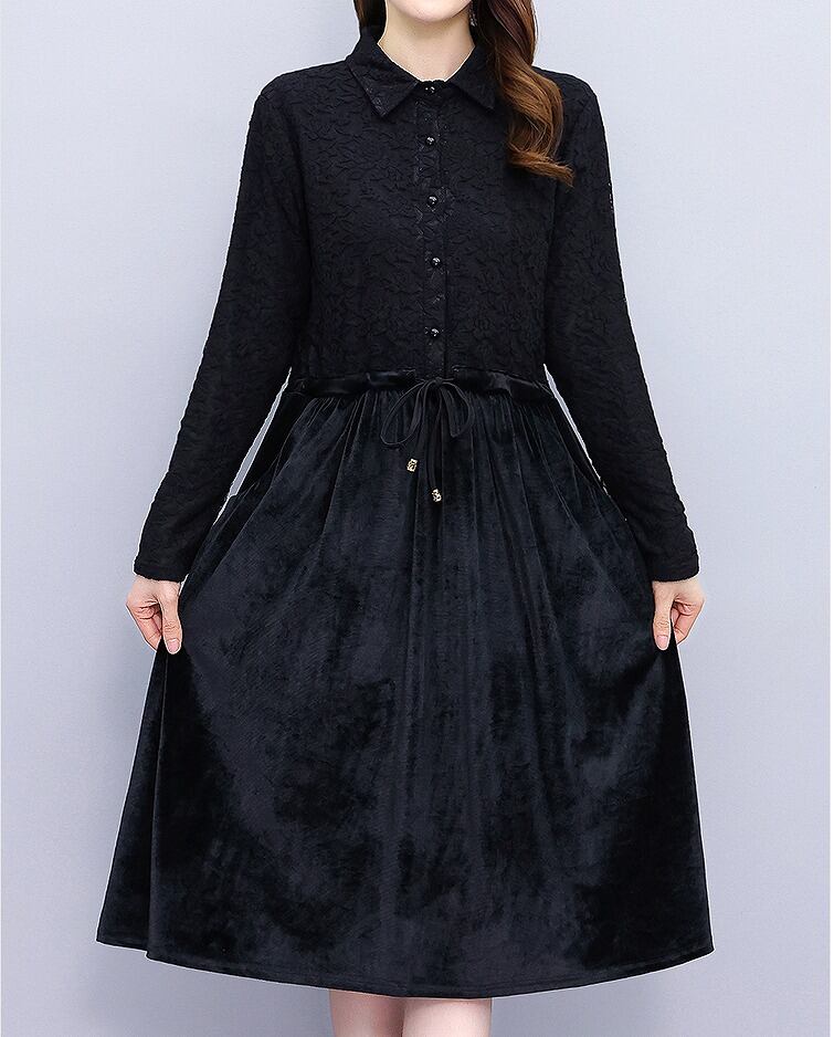 【大きいサイズXL-5XL】【秋冬新作】裏起毛ファッションワンピース