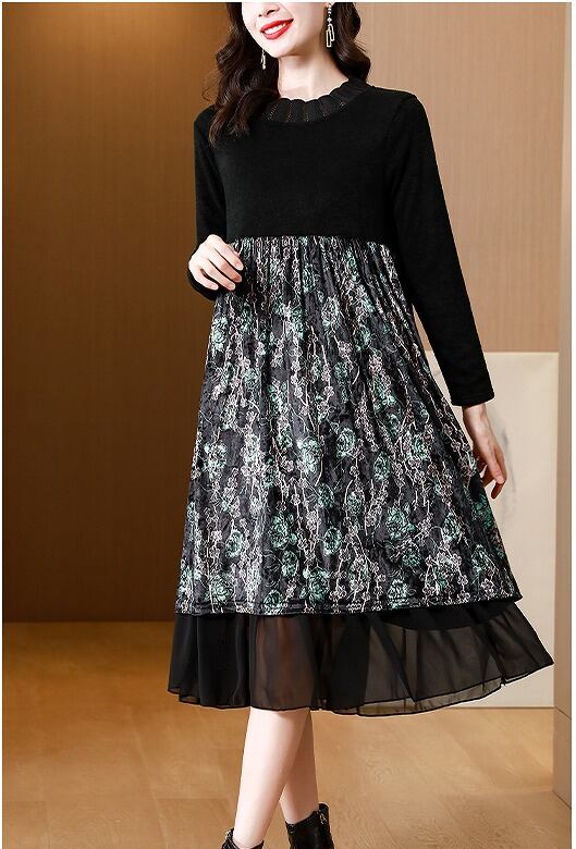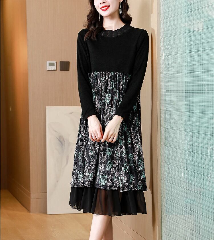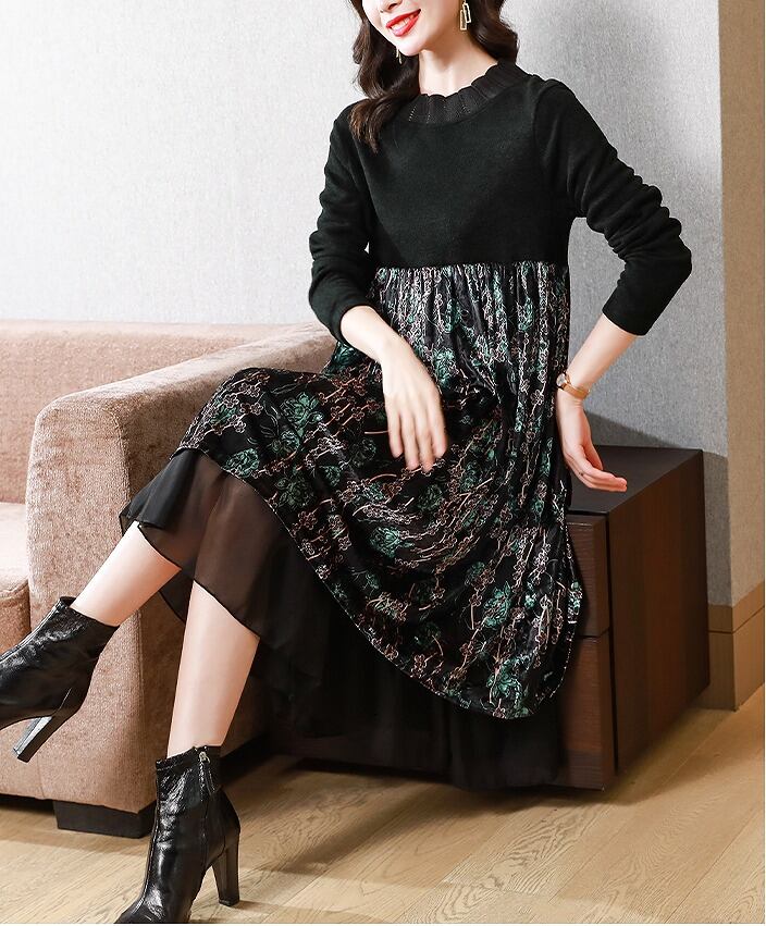 【大きいサイズXL-5XL】【秋冬新作】裏起毛ファッションワンピース
