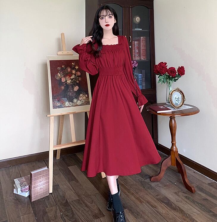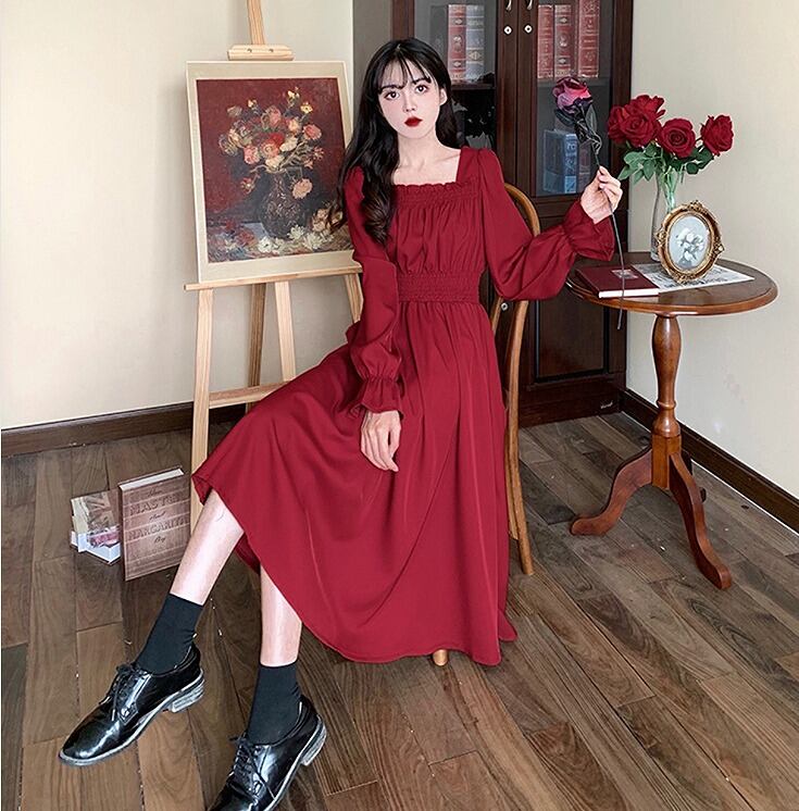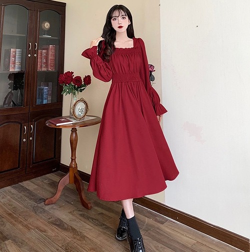 【大きいサイズM-4XL】【秋冬新作】ファッションワンピース♪アカ/ブラック2色展開◆#sctoth-20607