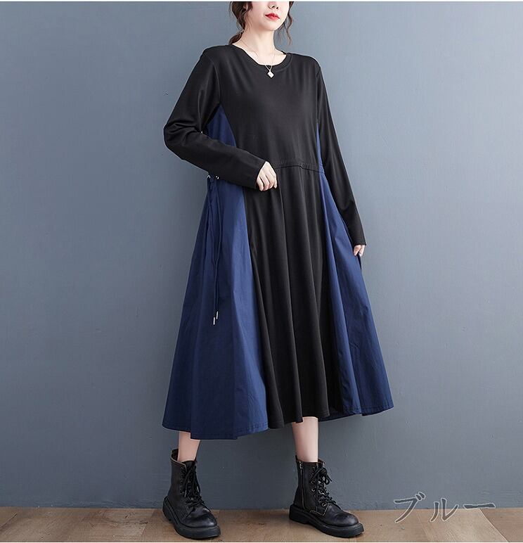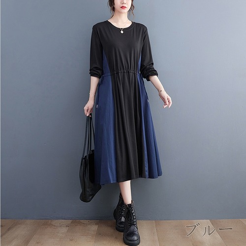 【秋冬新作】ファッションワンピース♪ブラック/ブルー2色展開◆#secmio-290697