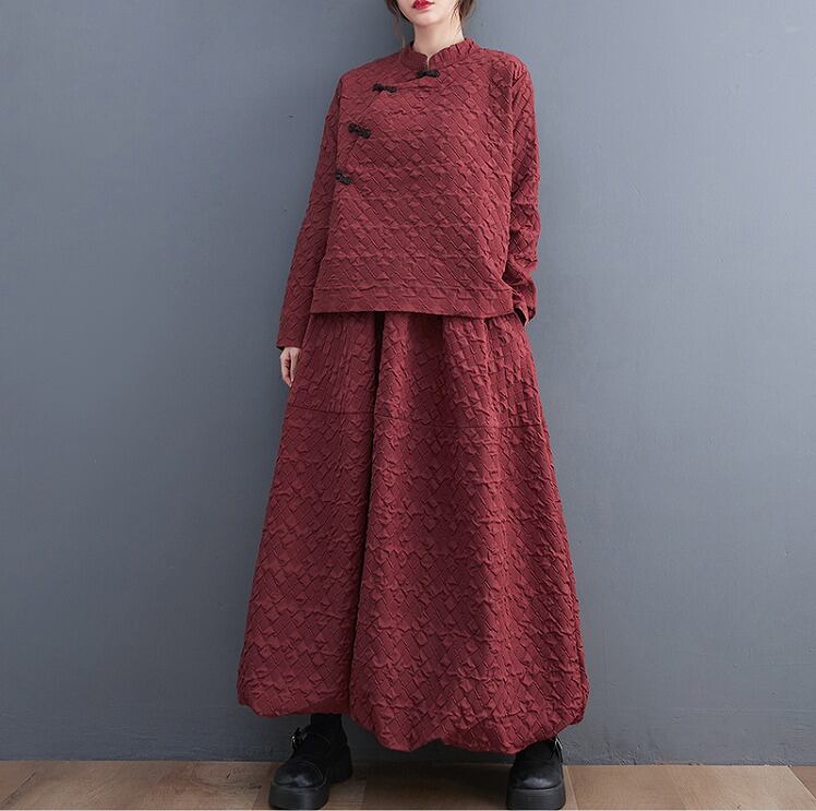 【秋冬新作】ファッション/上下セットトップス♪ブラック/アカ2色展開◆#secmio-219537