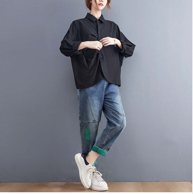 【秋冬新作】ファッションワイシャツ♪ホワイト/ブラック2色展開◆