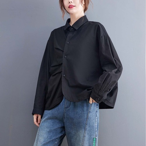 【秋冬新作】ファッションワイシャツ♪ホワイト/ブラック2色展開◆#sedmvo-277877