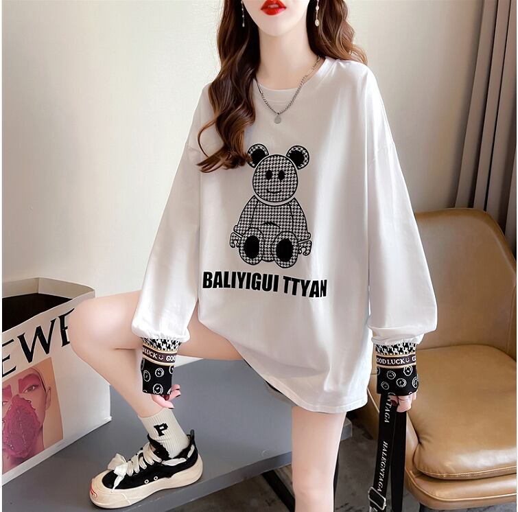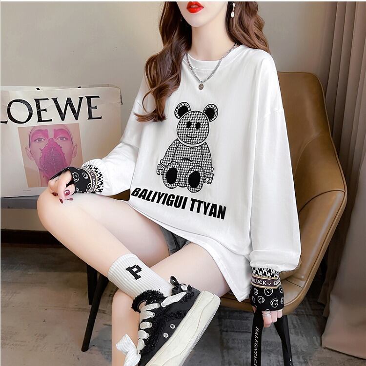 【秋冬新作】ファッションTシャツ♪ホワイト/ブラック2色展開◆#sebotv-2k30177