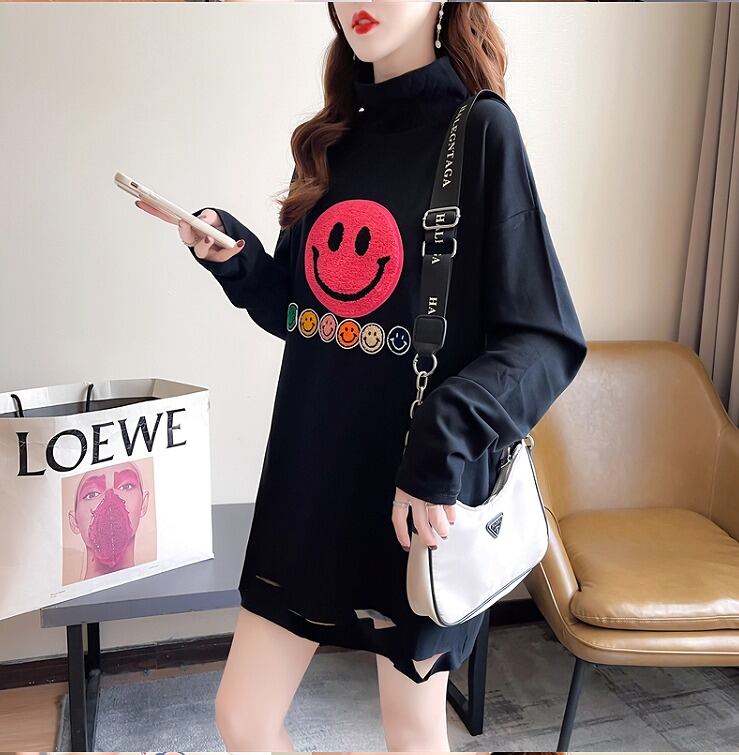 【秋冬新作】ファッションTシャツ♪ホワイト/ブラック2色展開◆#sebotv-2k40177