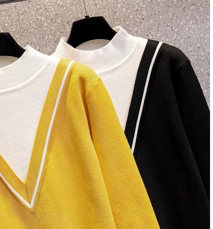 【大きいサイズXL-4XL】【秋冬新作】ファッションセーター♪ブラック/イエロー2色展開◆#seroo-272117
