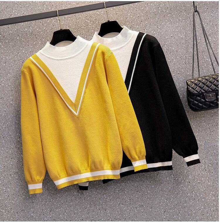 【大きいサイズXL-4XL】【秋冬新作】ファッションセーター♪ブラック/イエロー2色展開◆