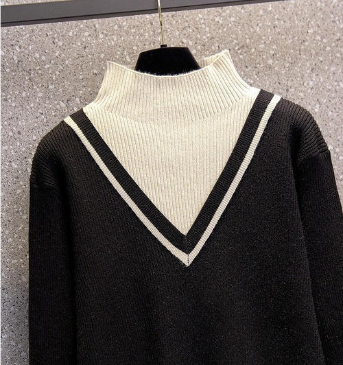 【大きいサイズXL-4XL】裏起毛ファッションセーター♪ブラック/アンズ2色展開◆#seroo-213117