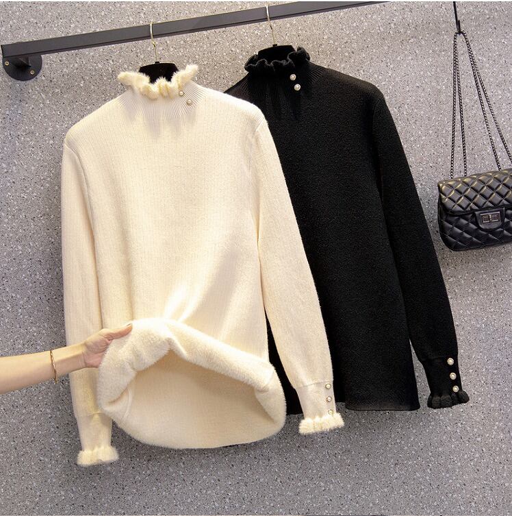 【大きいサイズXL-4XL】裏起毛ファッションセーター♪アンズ/ブラック2色展開◆#seroo-252117