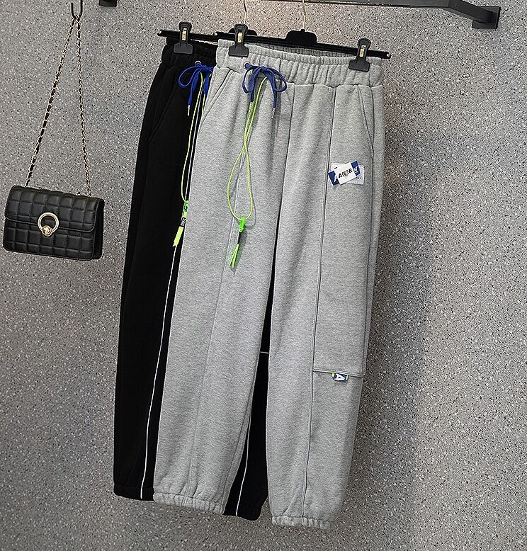 【大きいサイズL-4XL】裏起毛ファッションパンツ♪ブラック/グレー2色展開◆#seaoio-264627