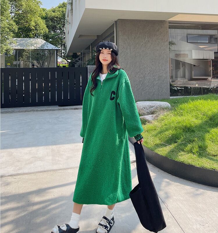 【大きいサイズXL-4XL】裏起毛ファッションワンピース♪ブラック/グリーン2色展開◆#sbiot-256567