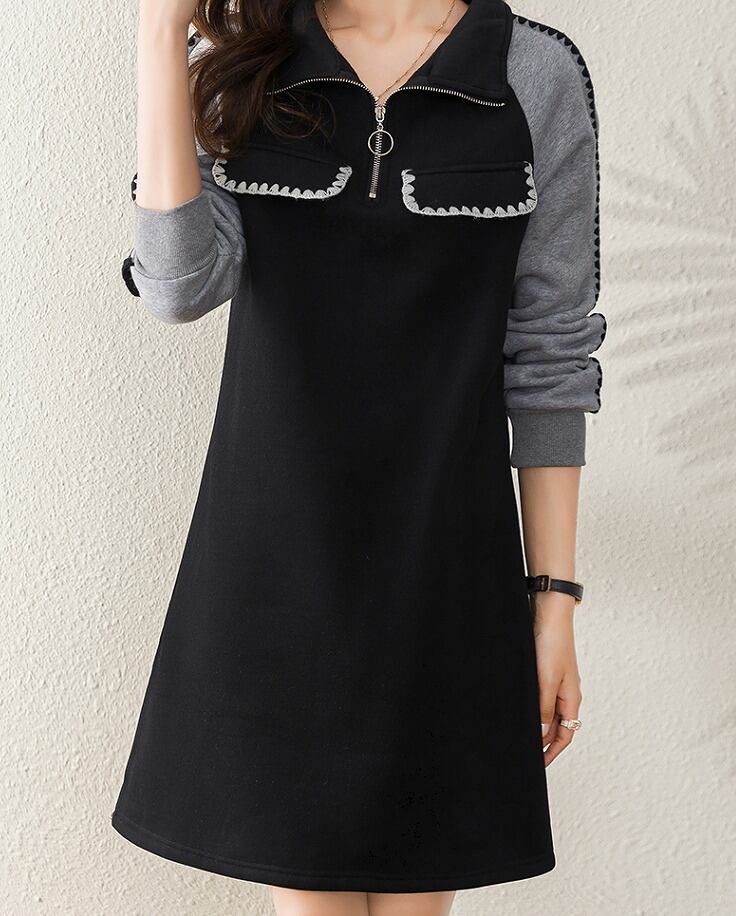 【大きいサイズL-4XL】裏起毛ファッションワンピース