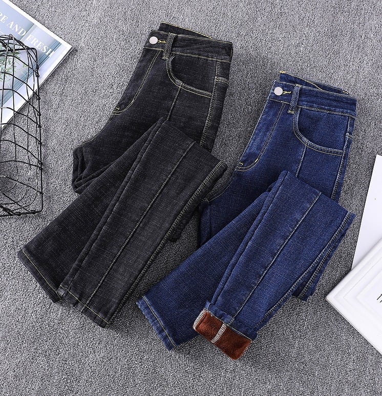 【大きいサイズXL-5XL】裏起毛ファッションジーンズ♪ブラック/ブルー2色展開◆#schofh-278797