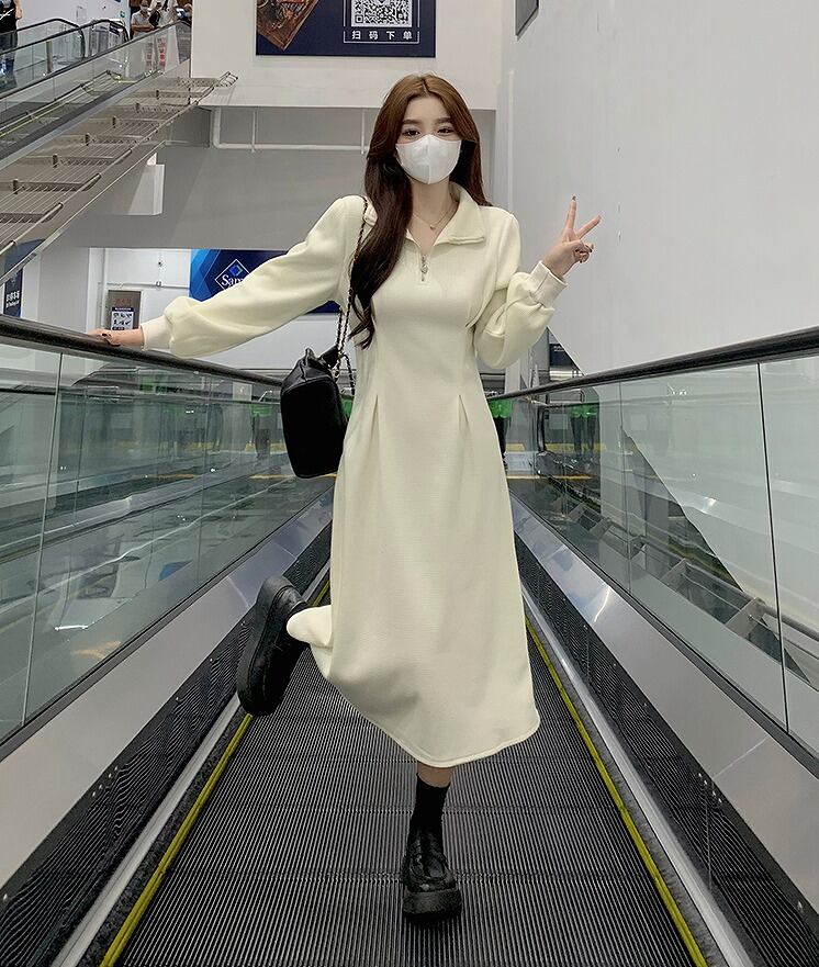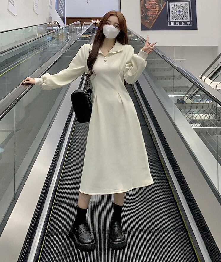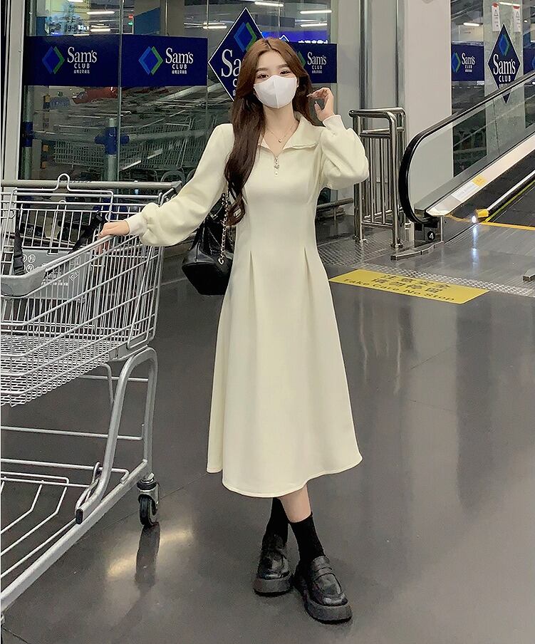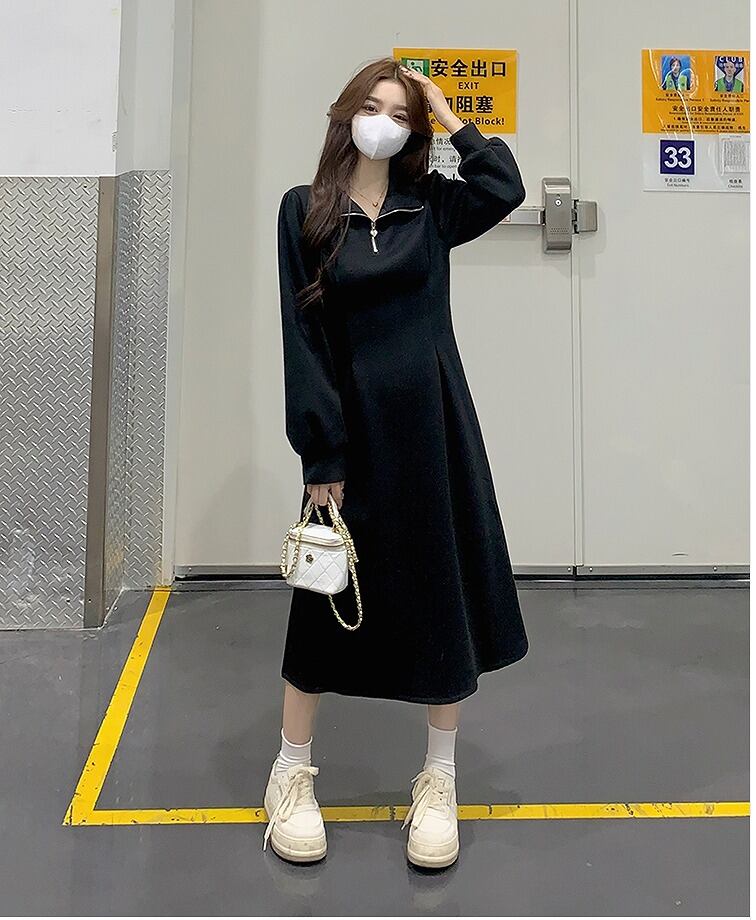 【大きいサイズM-4XL】裏起毛ファッションワンピース♪アンズ/ブラック2色展開◆#sctoth-23607