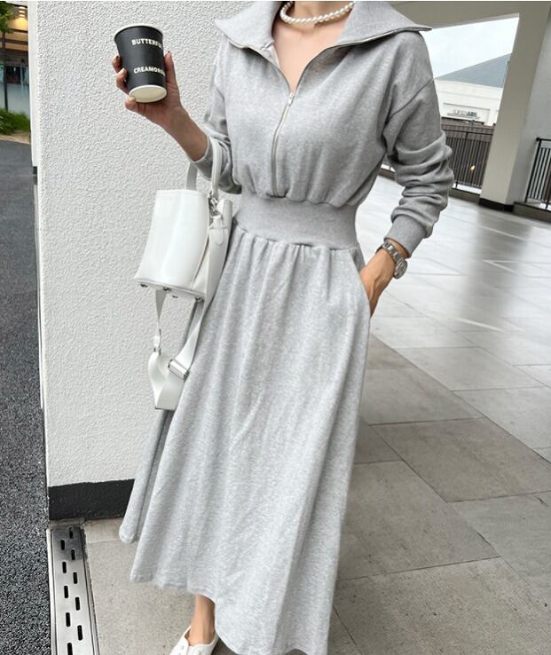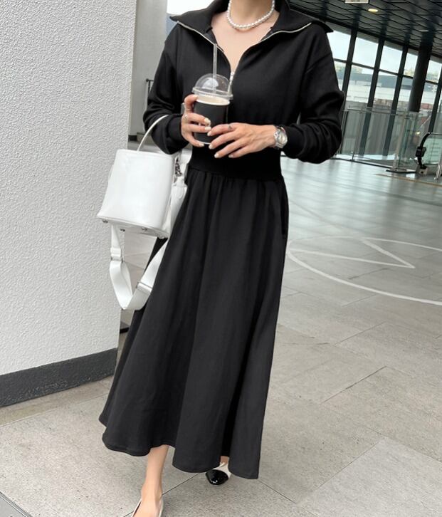 【大きいサイズXL-5XL】【秋冬新作】ファッションワンピース♪ブラック/グレー2色展開◆#seemtm-232017