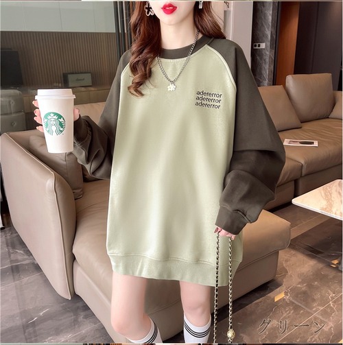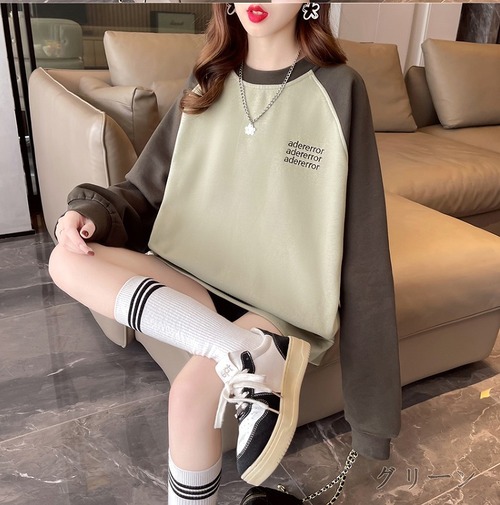 【秋冬新作】裏起毛ファッショントップス♪ホワイト/グリーン2色展開◆#stbfot-2mb41097