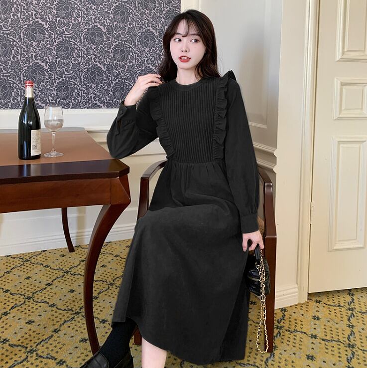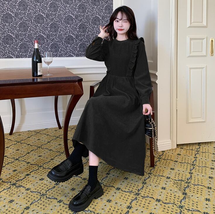 【大きいサイズL-4XL】【秋冬新作】ファッションワンピース♪ブラック/グリーン2色展開◆#serfh-281017