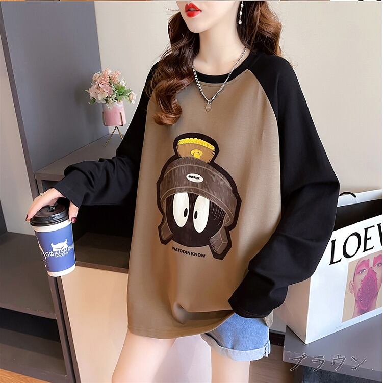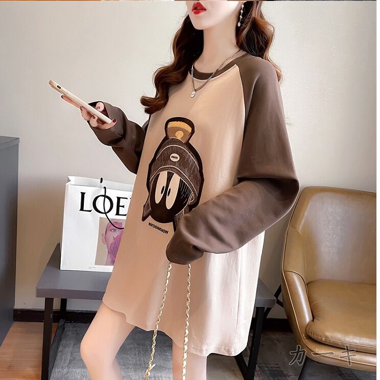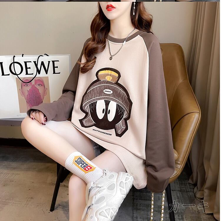 【秋冬新作】ファッションTシャツ♪ホワイト/ブラウン/カーキ3色展開◆#sebotv-2k46177