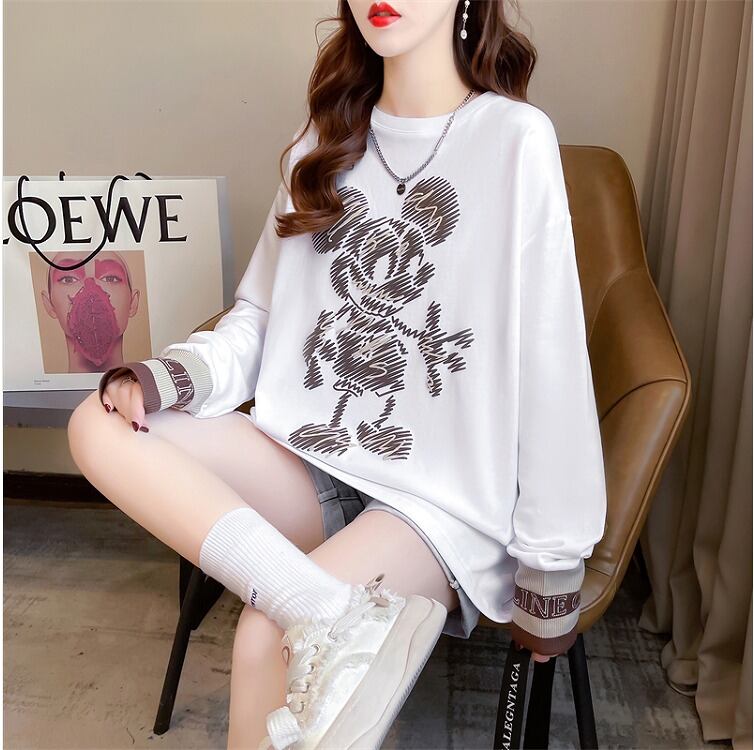 【秋冬新作】ファッションTシャツ♪ホワイト/ブラウン2色展開◆#sebotv-2k96177