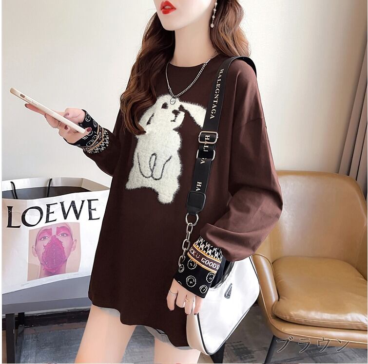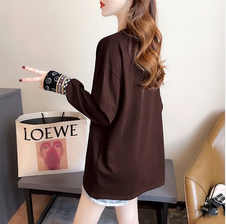 【秋冬新作】ファッションTシャツ♪ブラック/ブラウン2色展開◆#sebotv-2k27177