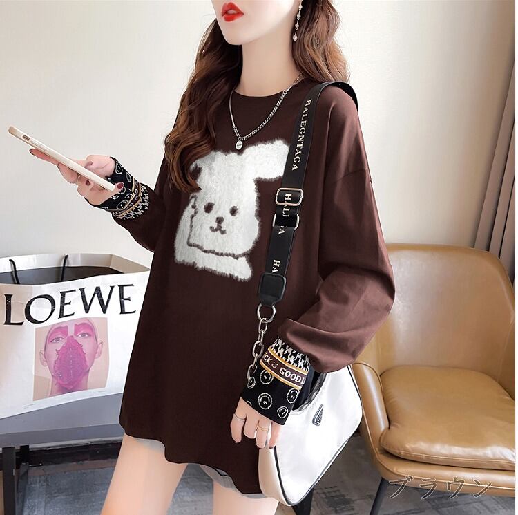 【秋冬新作】ファッションTシャツ♪ブラック/ブラウン2色展開◆#sebotv-2k37177
