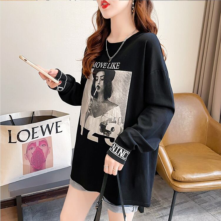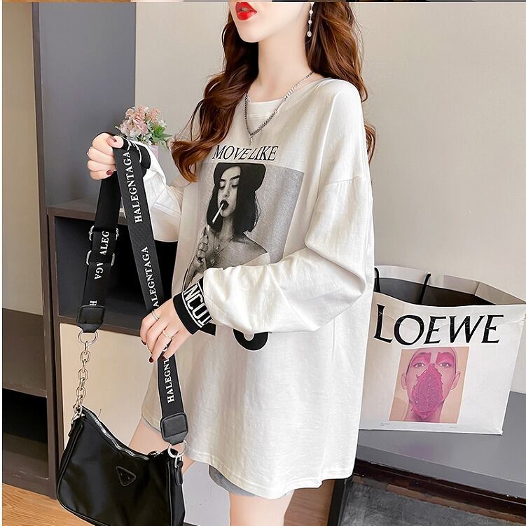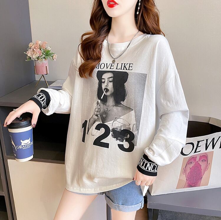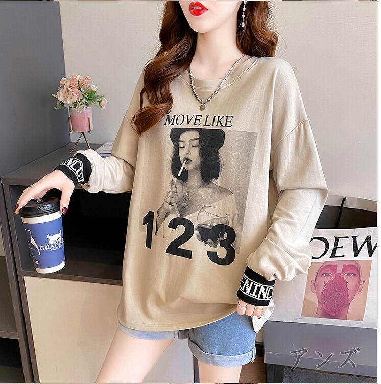 【秋冬新作】ファッションTシャツ♪ホワイト/ブラック/アンズ3色展開◆#sebotv-2d00507