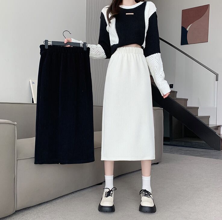 【大きいサイズL-4XL】裏起毛ファッションスカート♪ブラック/アンズ2色展開◆#scimoc-266817