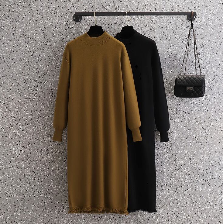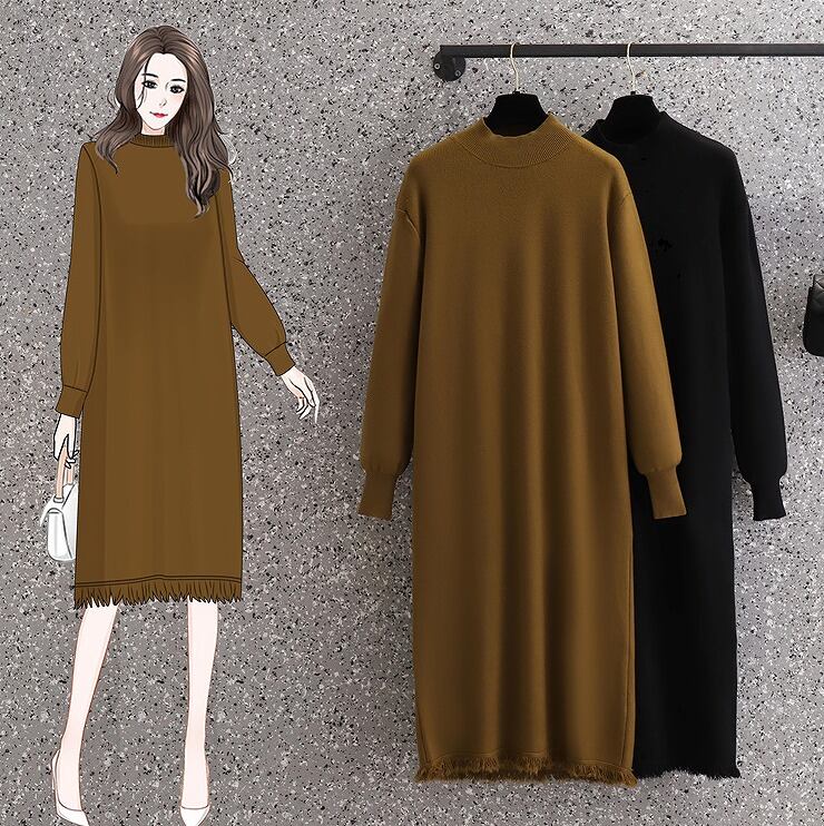 【大きいサイズL-4XL】【秋冬新作】ファッションワンピース♪ブラック/グリーン2色展開◆#scfmvt-27877