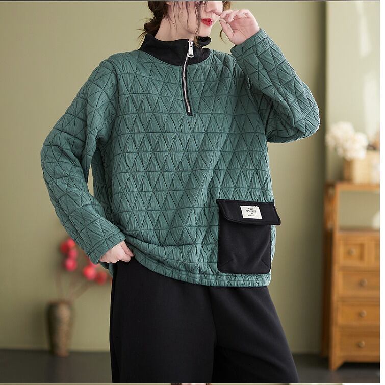 【秋冬新作】ファッショントップス♪ブラック/グリーン2色展開◆#sbsos-277077