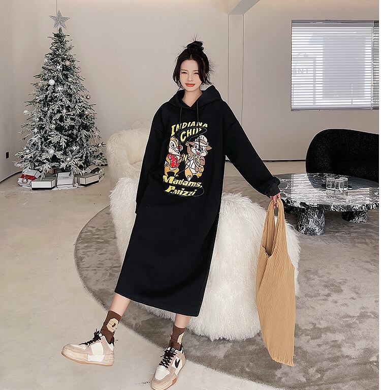 【大きいサイズXL-4XL】【秋冬新作】裏起毛ファッションワンピース#sbiot-2997057
