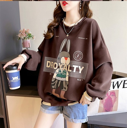 【秋冬新作】裏起毛ファッショントップス♪アンズ/ブラウン2色展開◆#sebotv-2k94177