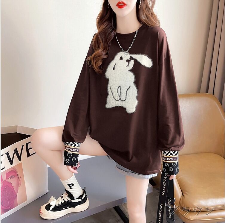 【秋冬新作】ファッションTシャツ♪ブラック/ブラウン2色展開◆#sebotv-2k27177