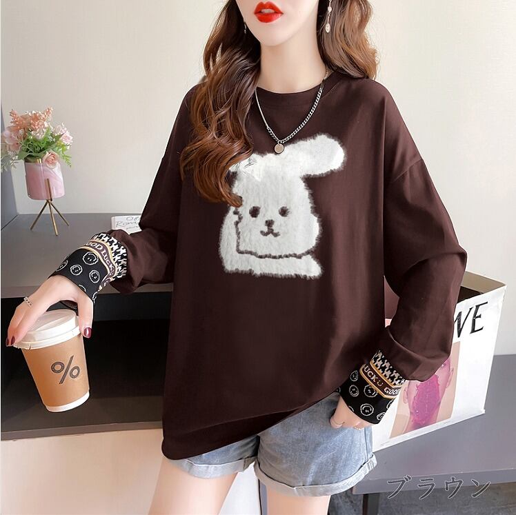 【秋冬新作】ファッションTシャツ♪ブラック/ブラウン2色展開◆#sebotv-2k37177