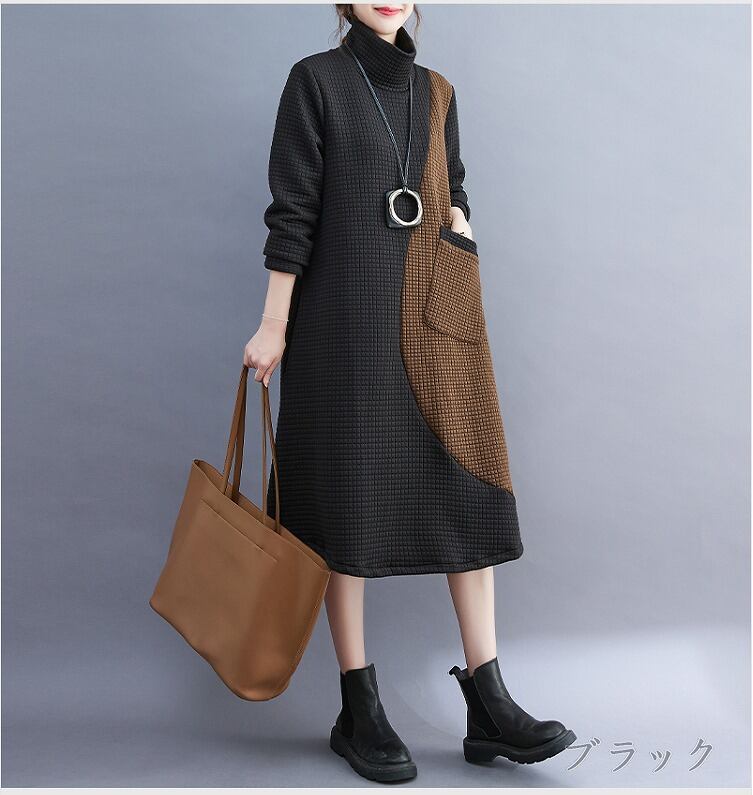 【秋冬新作】ファッションワンピース♪ブラック/ブラウン2色展開◆#scoofh-2159027