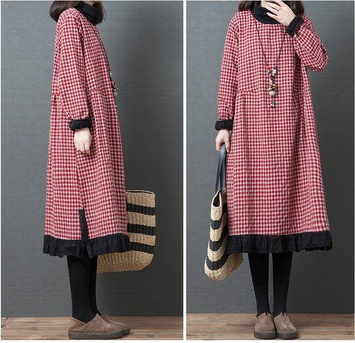 【秋冬新作】裏起毛ファッションワンピース♪アカ/ブラック2色展開◆#serfm-203897