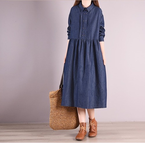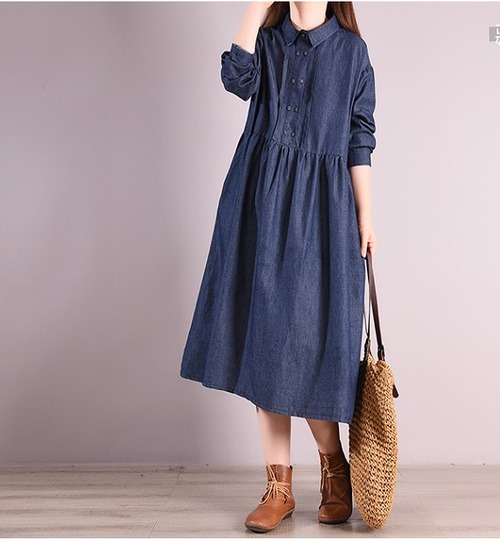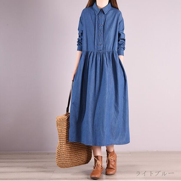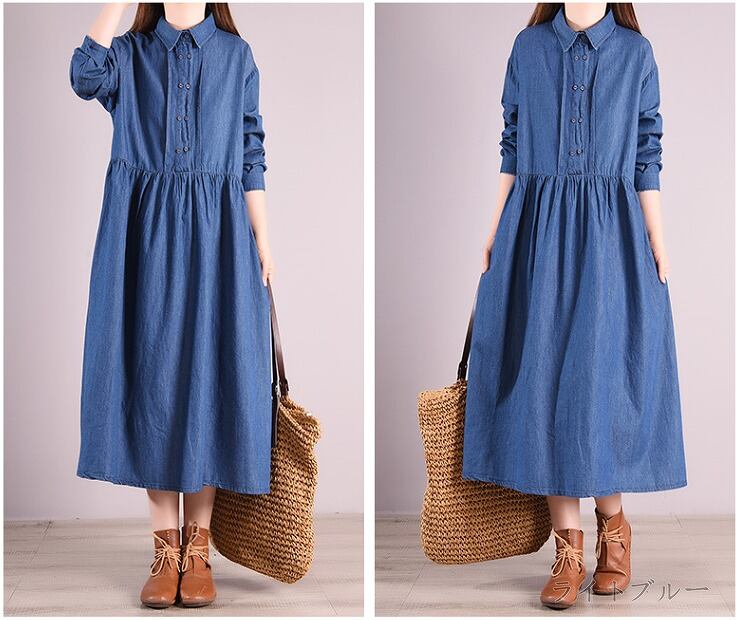 【秋冬新作】ファッションワンピース♪ダークブルー/ライトブルー2色展開◆#serfm-209897