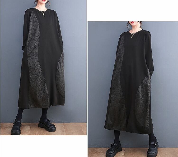 【秋冬新作】ファッションワンピース♪ブラック/ブルー2色展開◆#sedmmf-257867