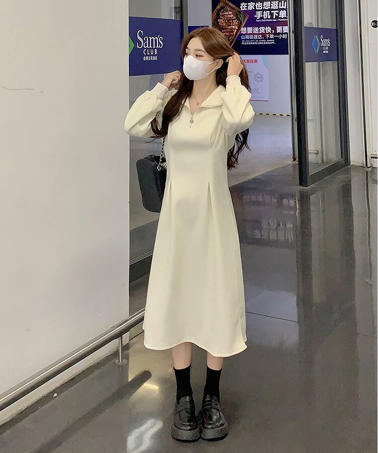 【大きいサイズM-4XL】裏起毛ファッションワンピース♪アンズ/ブラック2色展開◆#sctoth-23607