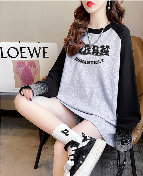 【秋冬新作】ファッションTシャツ♪ホワイト/グレー2色展開◆#sebotv-2k40277