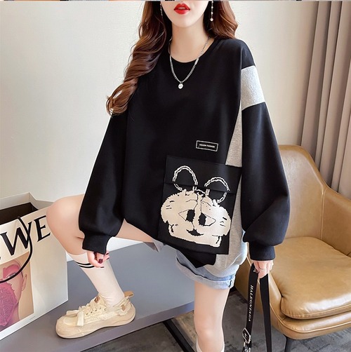 【秋冬新作】裏起毛ファッショントップス♪アカ/ブラック2色展開◆#sebotv-2k2127a7