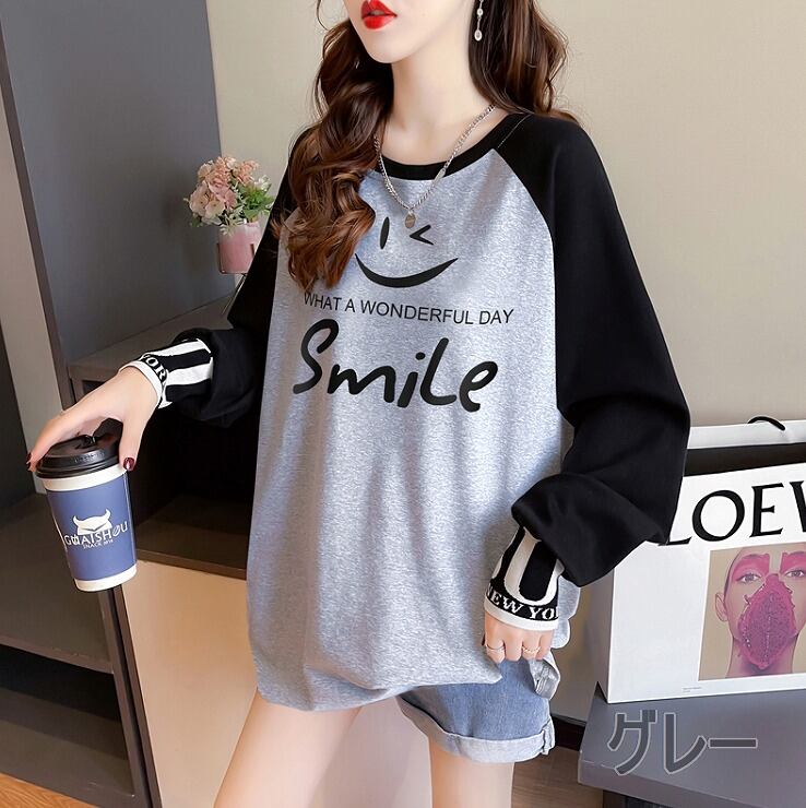 【秋冬新作】ファッションTシャツ♪ホワイト/グレー2色展開◆#sebotv-2k59177