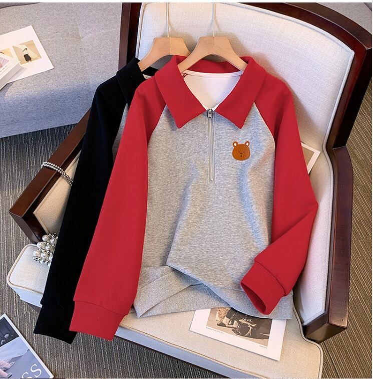 【大きいサイズL-4XL】【秋冬新作】ファッショントップス♪アカ/ブラック2色展開◆