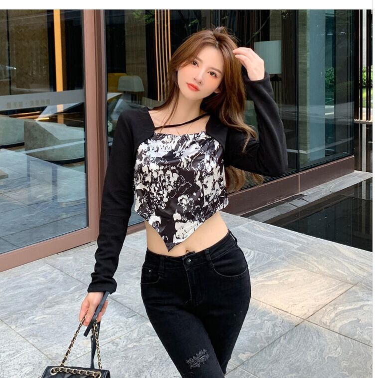 【即納】大きいサイズ レディース 春夏 トップス 長袖 ハーフ ダンス へそ出し