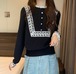 【大きいサイズL-4XL】ファッションセーター♪ベージュ/ブラック2色展開◆